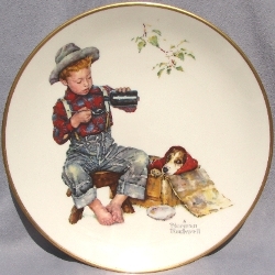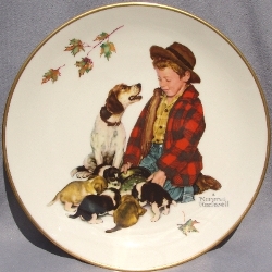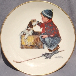In 1971, Gorham produced its first set of Four Seaons plates featuring the artwork of Norman Rockwell. For 1971, Gorham selected the series entitled A Boy and his Dog, which first appeared on a 1956 calendar by Brown & Bigelow. Each plate is 10.5 inches in diameter, banded with gold, and features a high quality, full color rendition of one of the Four Seasons in the series.