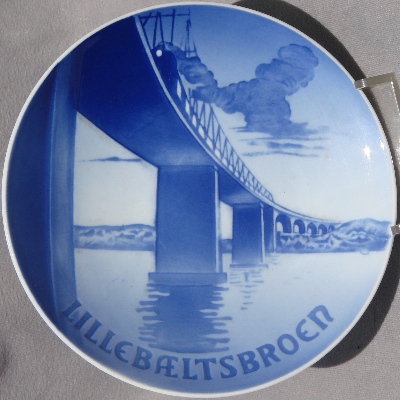 The Little Belt Bridge (Gamle Lillebæltsbro), now known as The Old Little Belt Bridge, is a truss bridge over the Little Belt strait in Denmark, and connects Jutland (the mainland) to the island of Funen. Opened in 1935, it is also featured on the B&G 1935 Christmas plate. The bridge is almost 3900 feet long and 68 feet wide, with two train tracks and two automobile lanes.